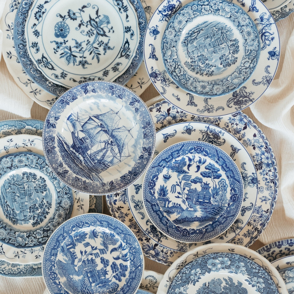 Vintage-mixed-blue-and-white-dinner-plate-410236